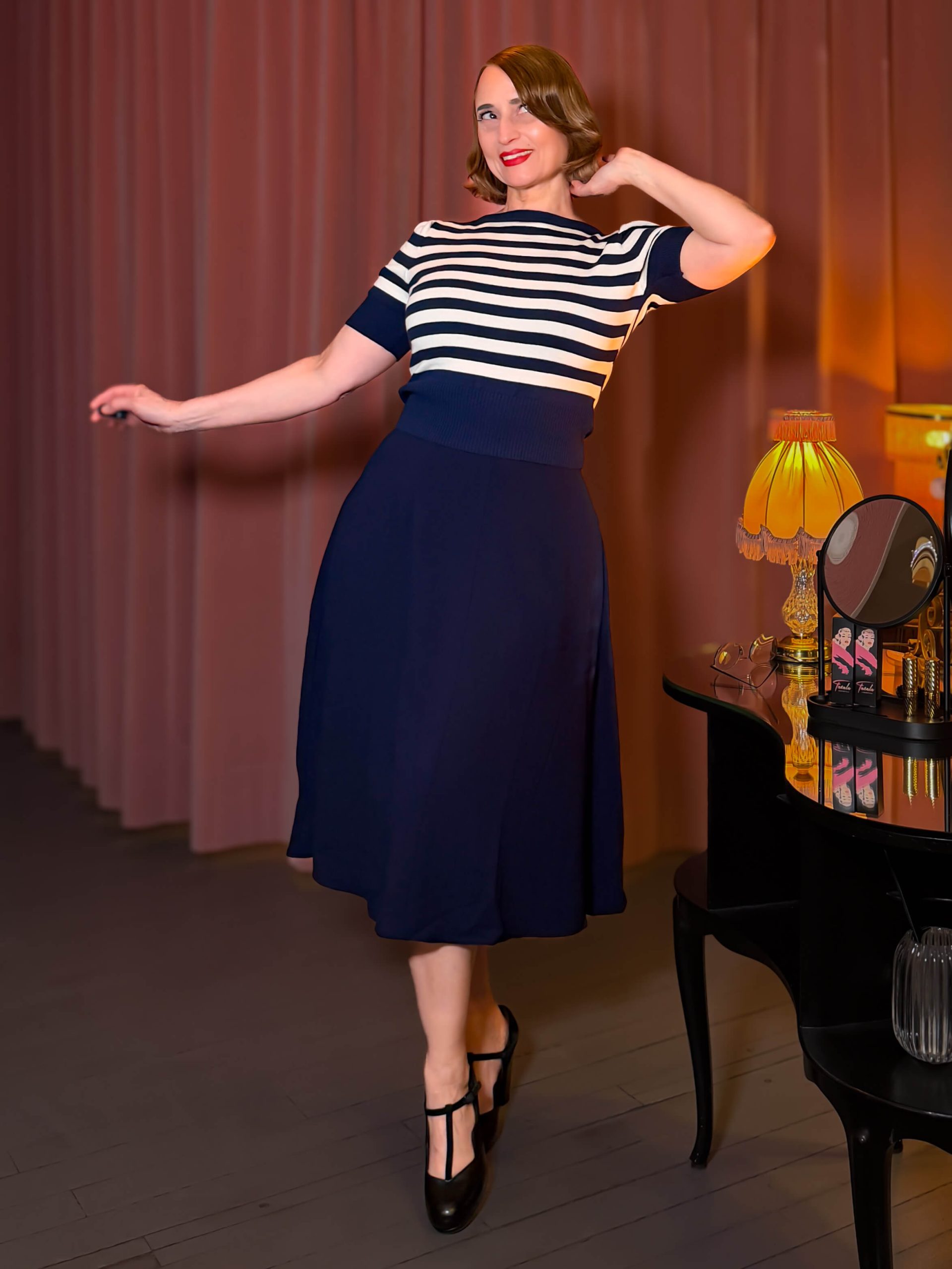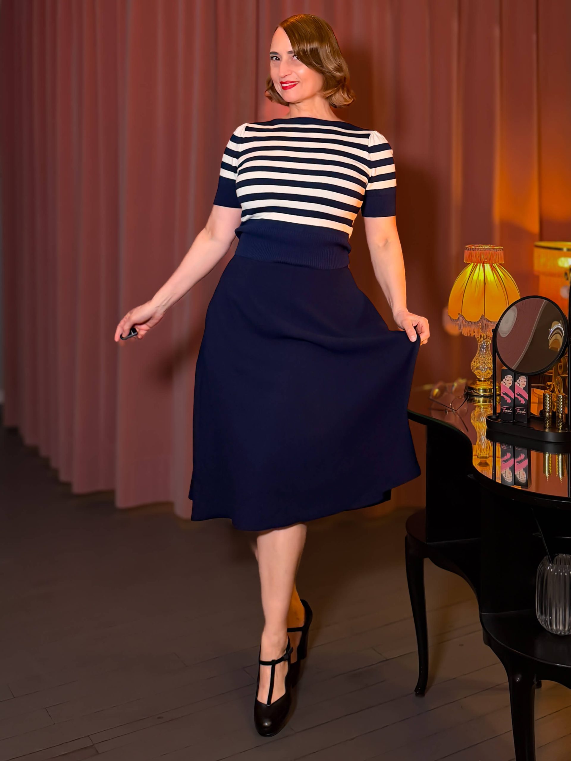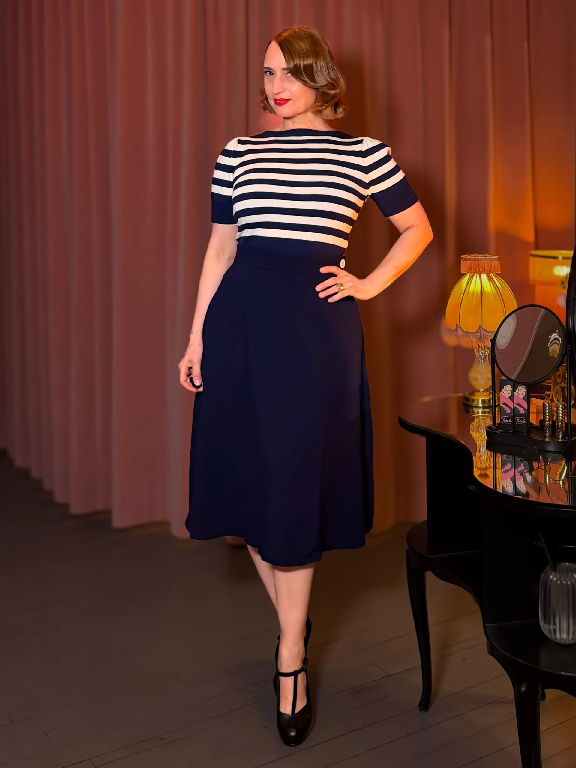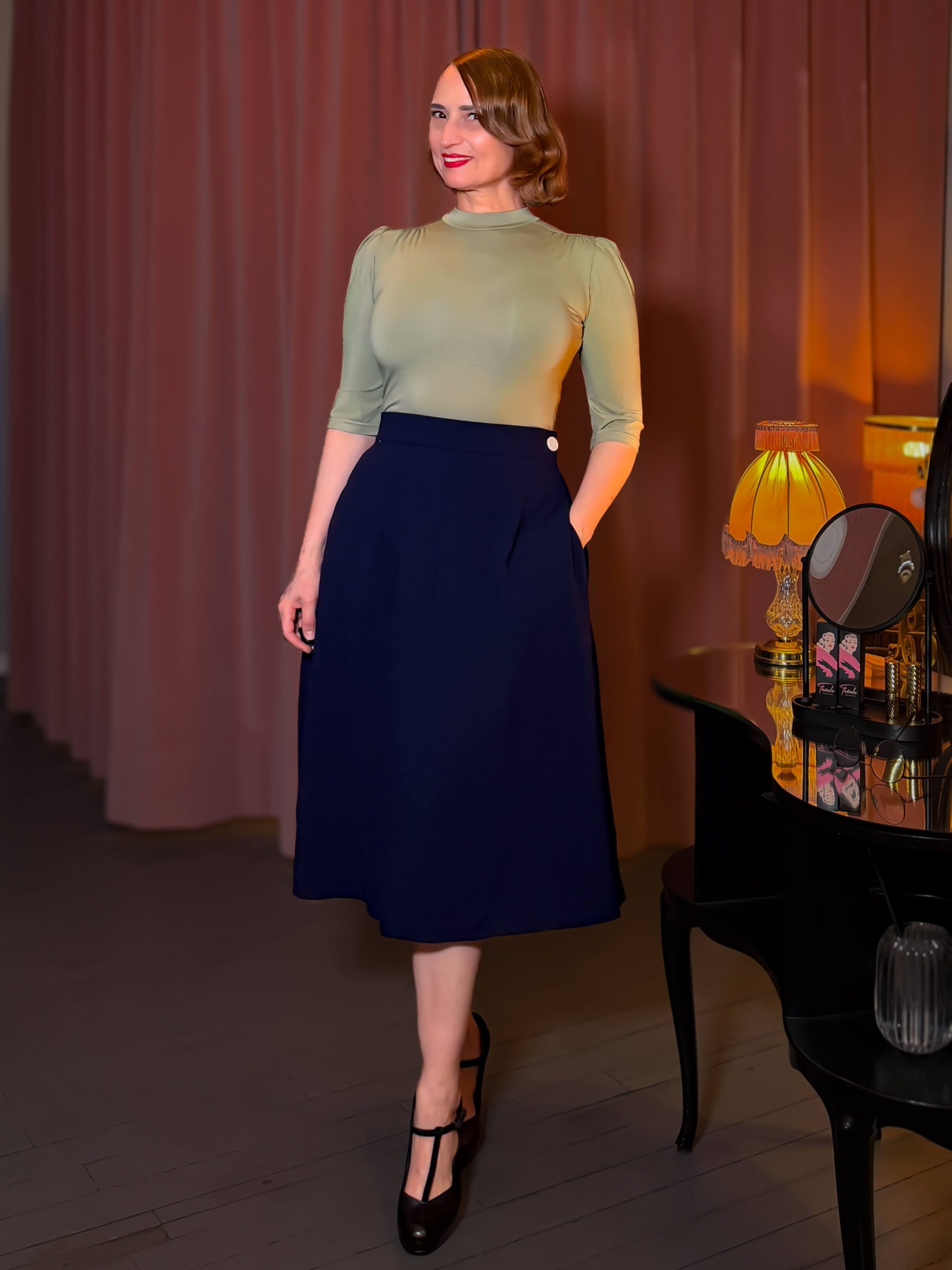 Classic 1940s A-Line Skirt – navy