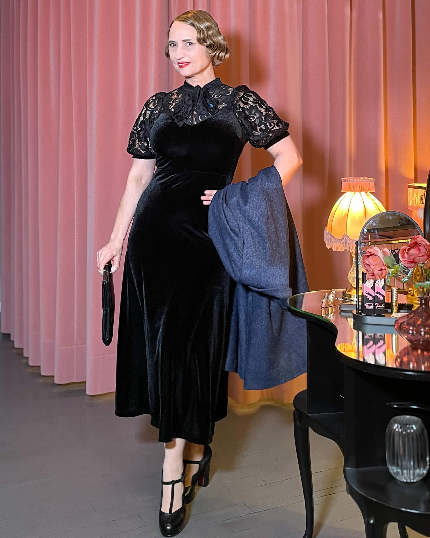 Selina ist ein traumhaft elegantes Kleid, das den Luxus von Samt mit der Romantik von Spitze vereint. Das figurbetonte Oberteil mit kurzen Puffärmeln aus zarter Spitze besticht durch eine schicke Schleife am Ausschnitt. Der ausgestellte Midirock verleiht der Figur eine anmutige Bewegung und eine zeitlose Silhouette. Die perfekte Wahl für festliche Anlässe und elegante Abende.