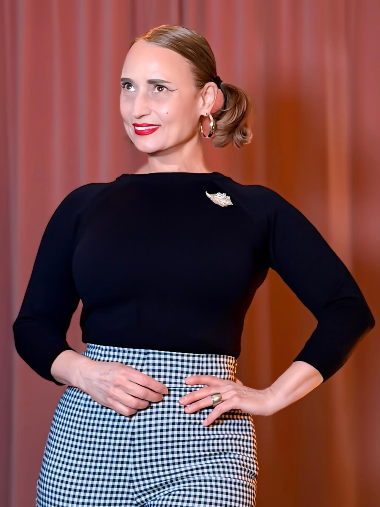 Dieser Pullover ist von der beliebten Mode der späten 1940er und 50er Jahre inspiriert. Mit dem Sweater Girl Top in sattem Schwarz erlebst Du zeitlose Eleganz – ein echter Klassiker der 1950er Jahre, inspiriert von der goldenen Ära des Retro-Glamours. Dieser ikonische Strickpullover vereint Vintage-Charme mit hohem Tragekomfort und fängt den Geist des Mid-Century-Stils perfekt ein. Er ist vielseitig kombinierbar und eignet sich sowohl für den Übergang vom Büro zum Abend als auch für verspielte Retro-Outfits.