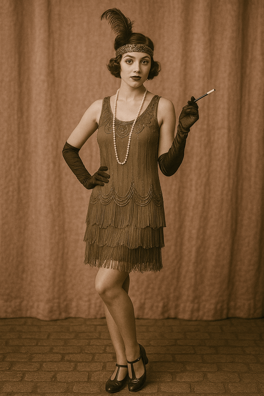 Du kannst ein Pailletten- oder Fransenkleid mit schlichten Pumps und dezenten Accessoires tragen und das Stirnband nur für besondere Anlässe nutzen. Eine Marlenehose wirkt im Alltag modern mit Rollkragenpullover oder schlichter Bluse und Loafers. Wichtig ist, ein Vintage-Keypiece mit ruhigen Basics zu kombinieren – so bleibt der 1920er-Charme erhalten, ohne dass das Outfit wie ein Kostüm aussieht.